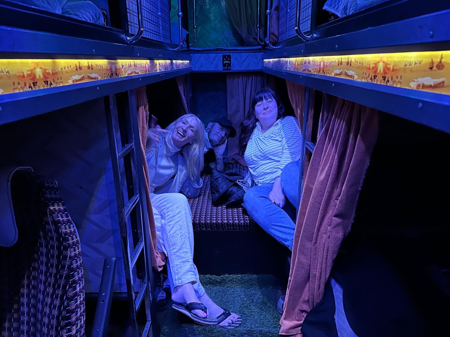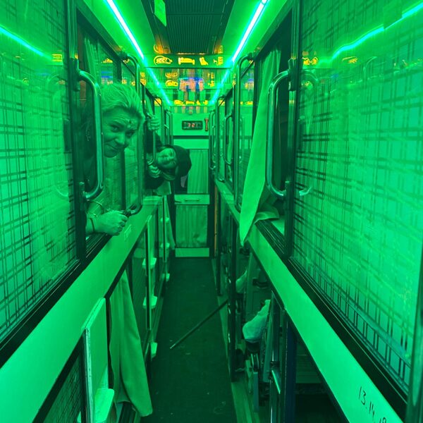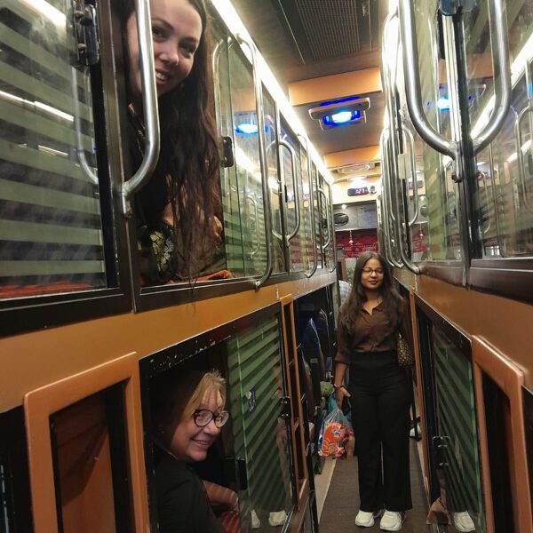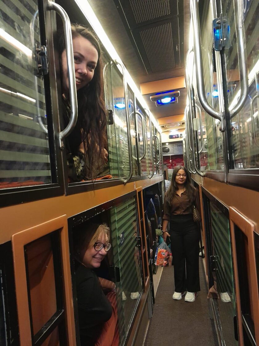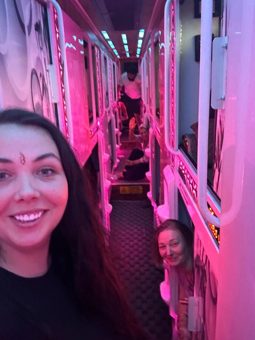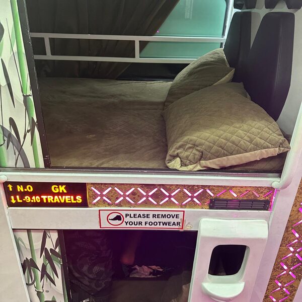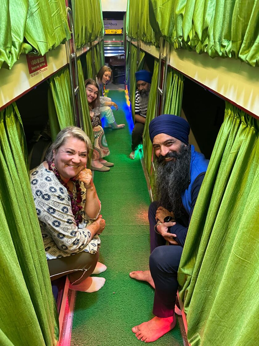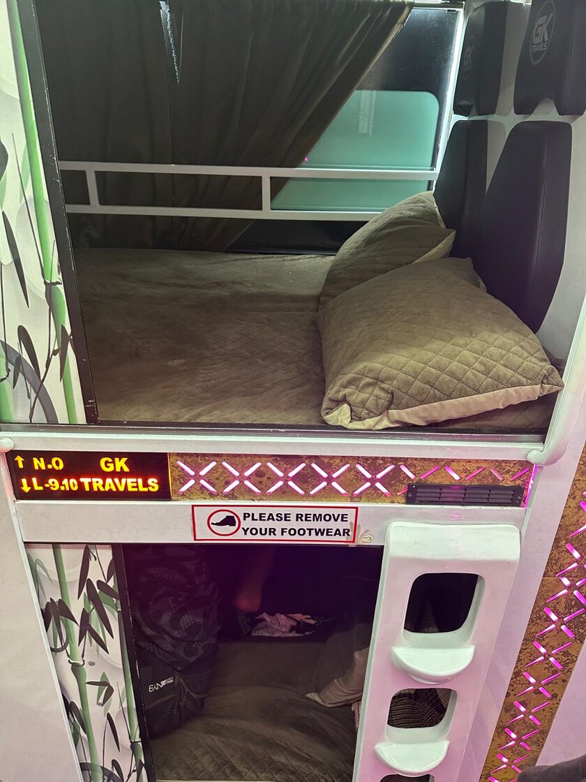 Indija ir milzīga un attālumi starp pilsētām ir gari, dažas naktis pārvietosimies ar guļamajiem nakts autobusiem. Tas ļauj mums ceļā netērēt dienas, bet izmantot tās Indijas iepazīšanai. Ceļā gulēsim 3-4 naktis šādos autobusos. Mums būs sava guļvieta -maza telpa — kabīnīte ar aizveramiem aizkariem vai durtiņām, gaisa kondicionieris un iespēja atgulties, ne tikai sēdēt, kamēr autobuss ved uz nākamo pieredzi.