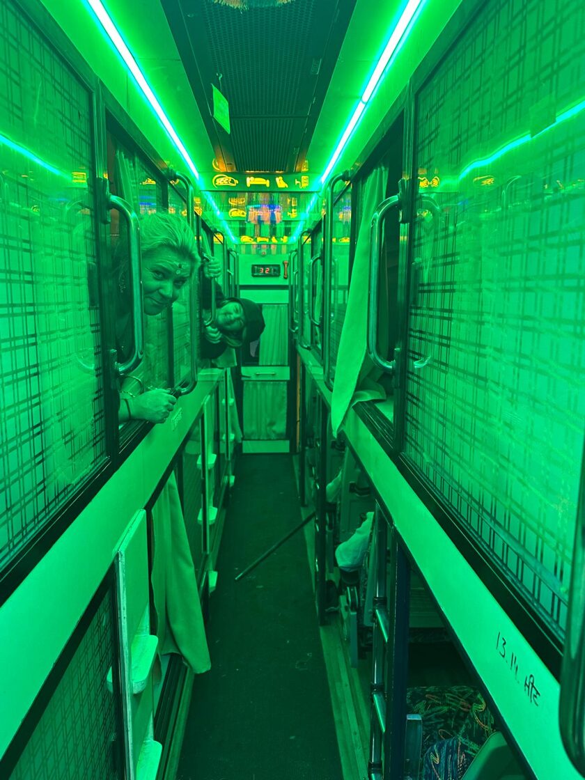 Indija ir milzīga un attālumi starp pilsētām ir gari, dažas naktis pārvietosimies ar guļamajiem nakts autobusiem. Tas ļauj mums ceļā netērēt dienas, bet izmantot tās Indijas iepazīšanai. Ceļā gulēsim 4 naktis šādos autobusos. Mums būs sava guļvieta -maza telpa — kabīnīte ar aizveramiem aizkariem vai durtiņām, gaisa kondicionieris un iespēja atgulties, ne tikai sēdēt, kamēr autobuss ved uz nākamo pieredzi.